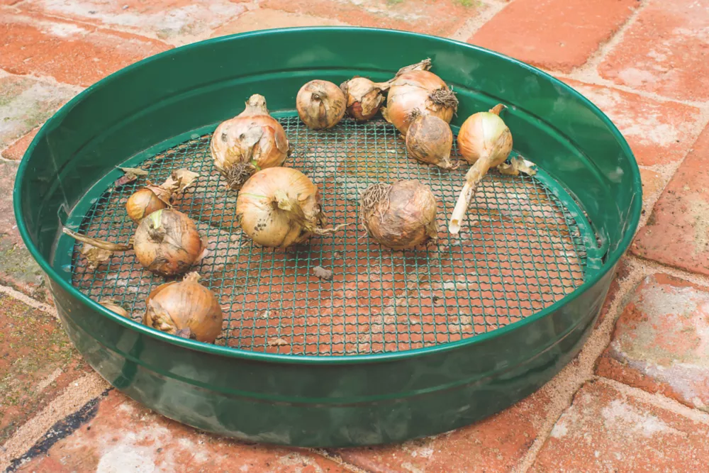 Durable, powder-coated steel frame. Ideal for filtering stones and debris from soil as well as sowing seeds.