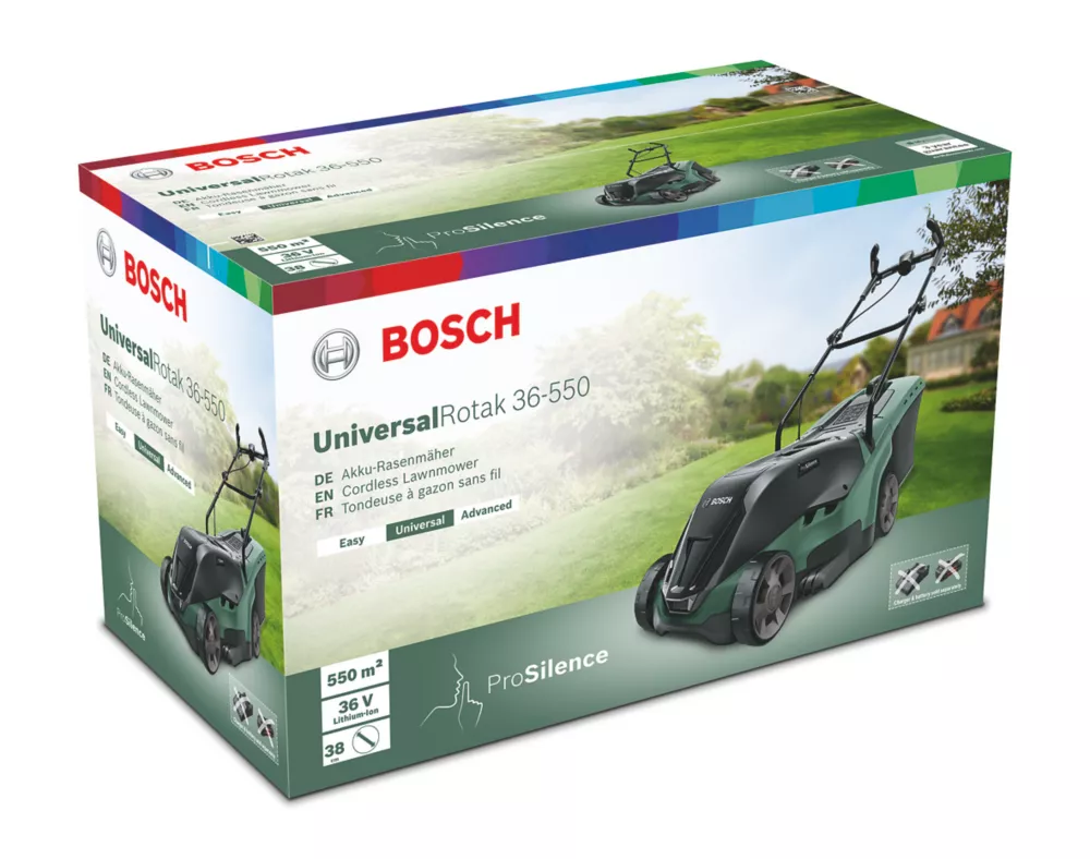 Versatile cordless lawnmower with Ergoflex handles and ProSilence feature. Offers 6 cutting heights, ranging from 25 to 70mm, with simple button operation. LeafCollect blade cuts grass and can also be used to collect leaves. Part of the 36V Power For All system where 1 battery can be used in all 36V Power For All tools.