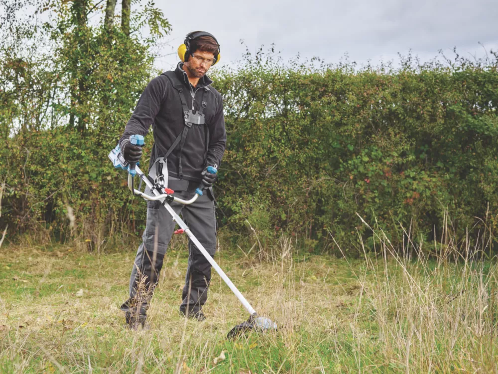 18V battery-powered and brushless brushcutter with luxury harness and hip protection. Cutting width of 23cm. Adjustable handle for increased comfort and enhanced control. Part of the Erbauer EXT and EXT EliteCell, one battery system, running multiple tools for increased flexibility. Compatible with all Erbauer 18V EXT and EXT EliteCell batteries and chargers.