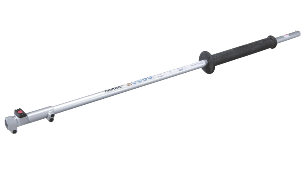 For use with Makita DUX60 cordless split machine. Extension shaft allows for long reach applications when using the split shaft machine in conjunction with pole saw and hedge trimmer attachments. Non-directional drive shaft and tool-less mechanism enables quick and easy installation and removal.