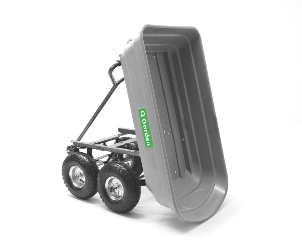Poly garden trolley with 4 large 10 x 3″ wheels and tipping facility.