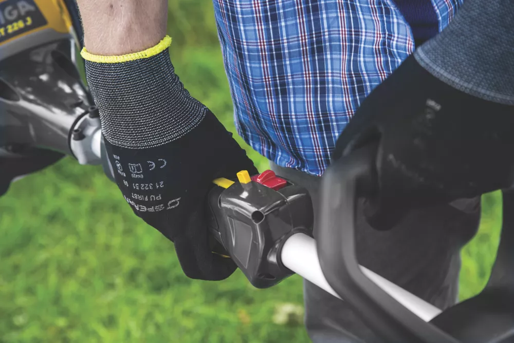 25.4cc 0.70kW 2-stroke petrol engine with well-balanced, curved shaft for greater leverage, which is jointed for easy transportation and storage. Ideal for perfecting borders and trimming grass around obstacles in the lawn. Features single loop soft-grip handle and 38cm cutting width, with Tap and Go dual-line head, which quickly releases the line when tapped on the ground. Suitable clothing and visor advised, for protection from debris.