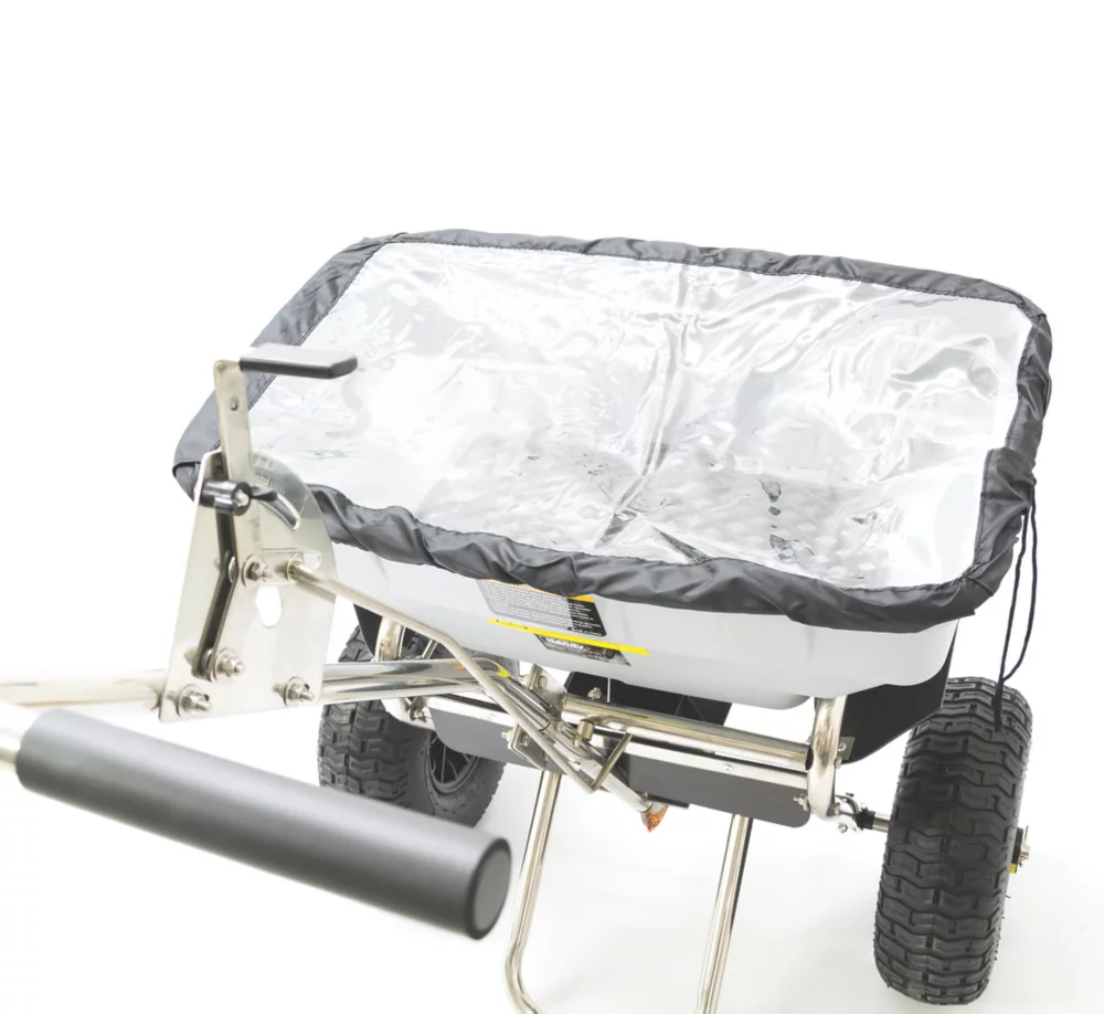 Suitable for both commercial and large-scale domestic use. Quick and efficient way to de-ice paths, driveways, forecourts and other areas. Easy to push with wide-profile pneumatic tyres that have no trouble propelling it across rough or undulating ground. Features a handlebar-mounted adjuster that facilitates precision setting of the spread-rate. Adjustable deflectors to quickly switch from pathway to open-space work. Can be used for the application of granular fertiliser. Includes a hopper screen that prevents clogging and a cover to keep the contents dry.