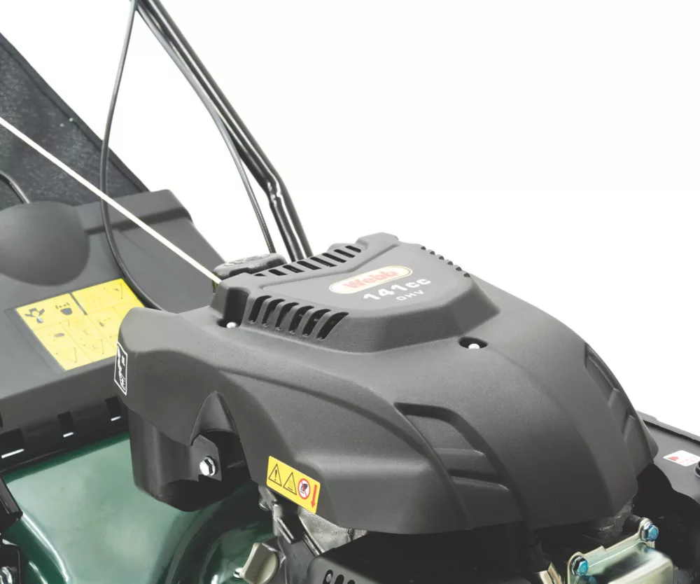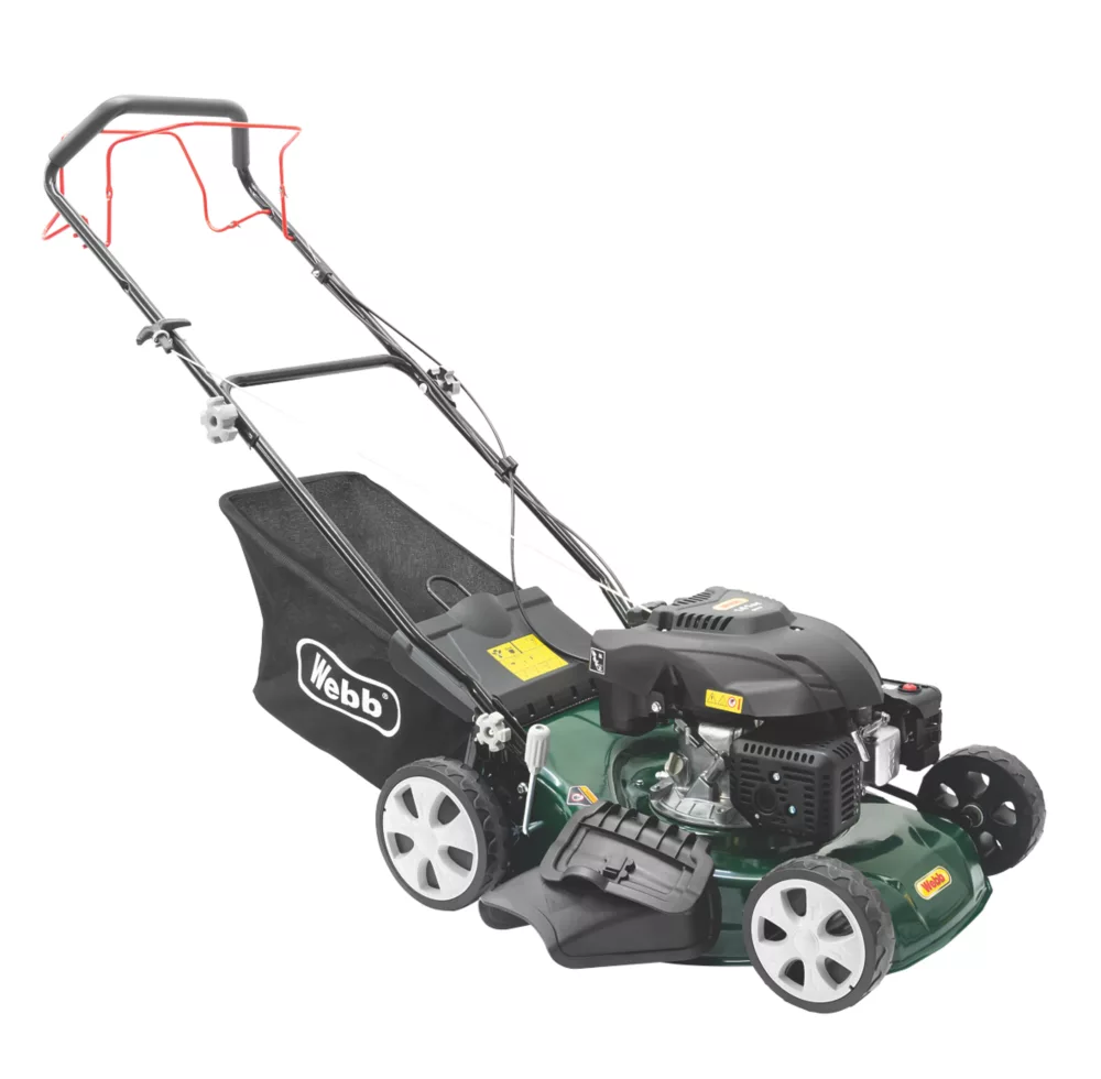 Powered by a high performance Webb DVO 4-stroke engine. OHV technology delivers quiet, smooth-running operation with reduced fuel costs. Can collect, mulch, rear and side discharge. Features 7 cutting heights from 25-75mm. Supplied with 55Ltr grass collector, fold-down handlebar and steel cutting deck. A rear-wheel power drive ensures that unlevel terrain or rough-grass areas can be worked on with the utmost ease. Suitable for medium to large-sized lawns.